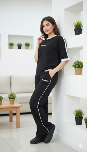 ست کراپ شلوار راحتی پنبه چاپ پفکی میو میو miu miu و بالنسیاگا Balenciaga
