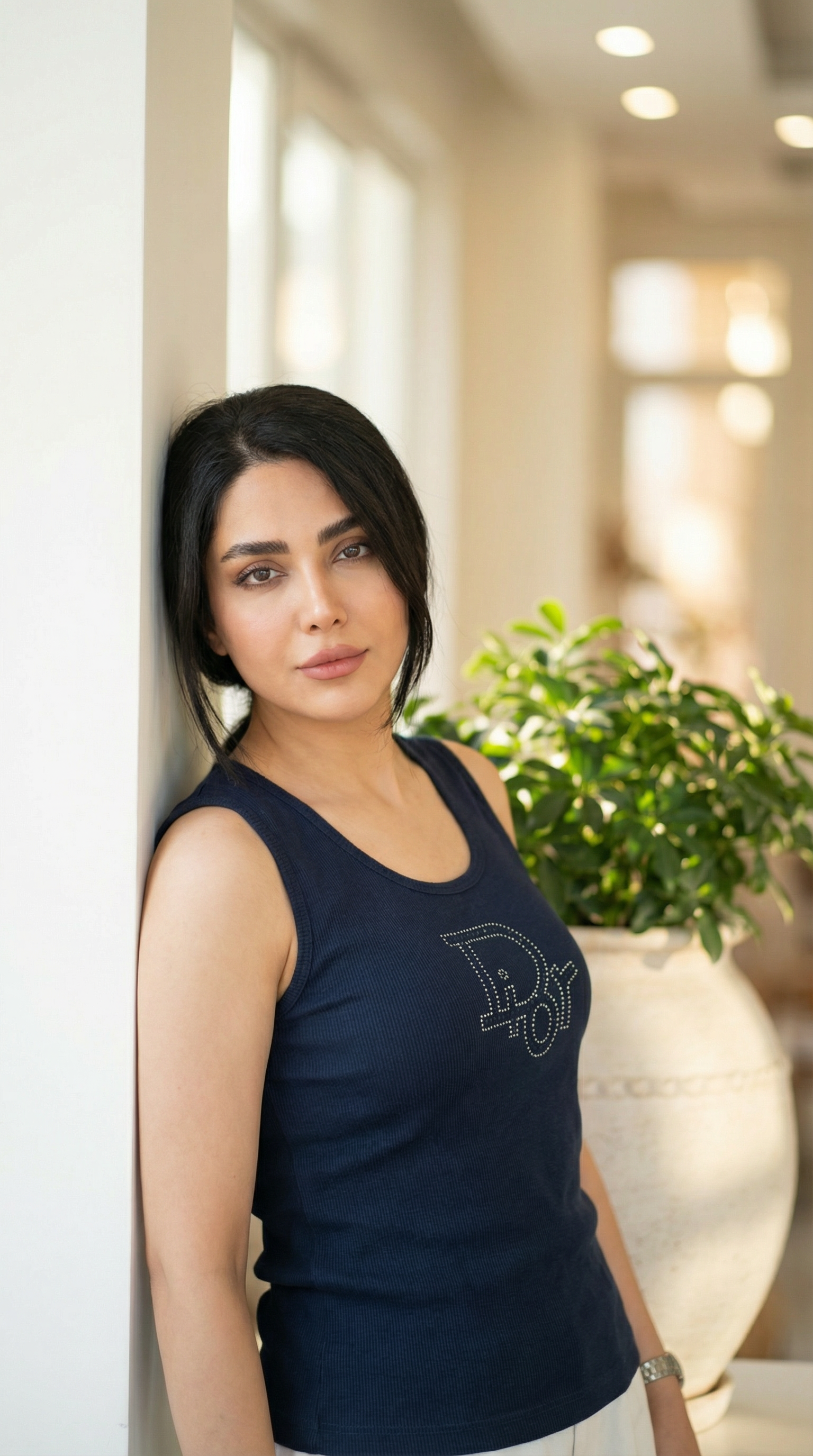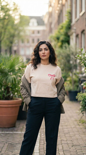 کراپ فانریپ آستین کوتاه جلو نگین دار