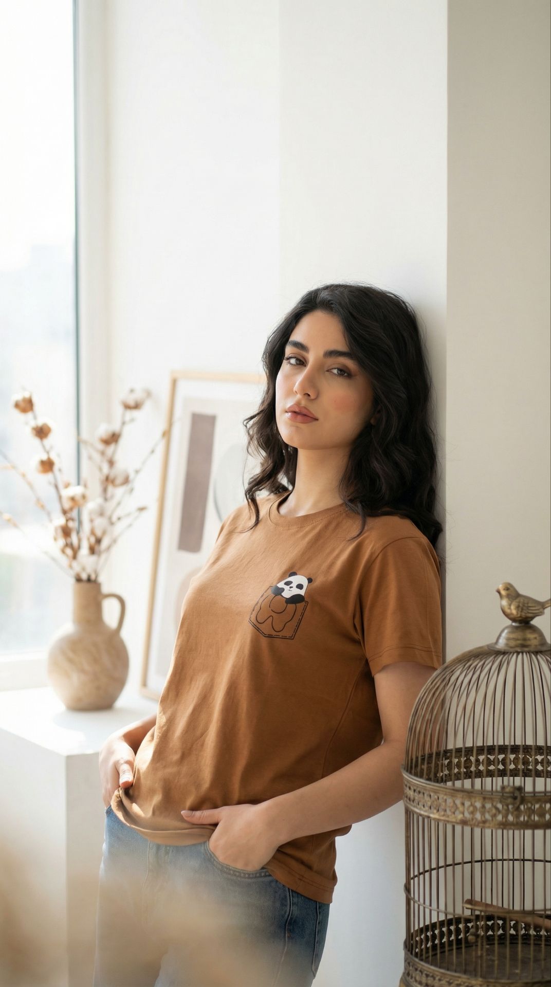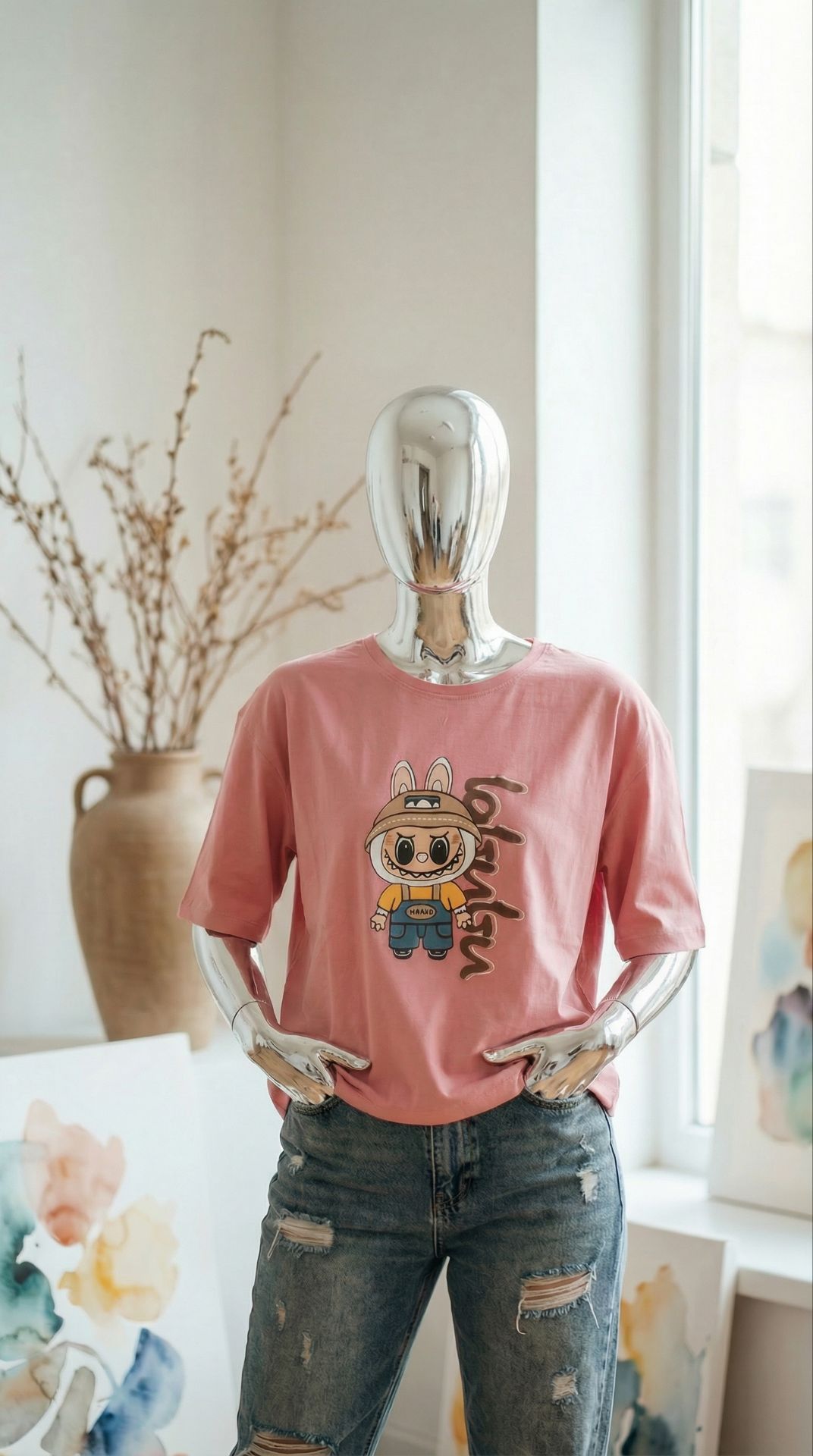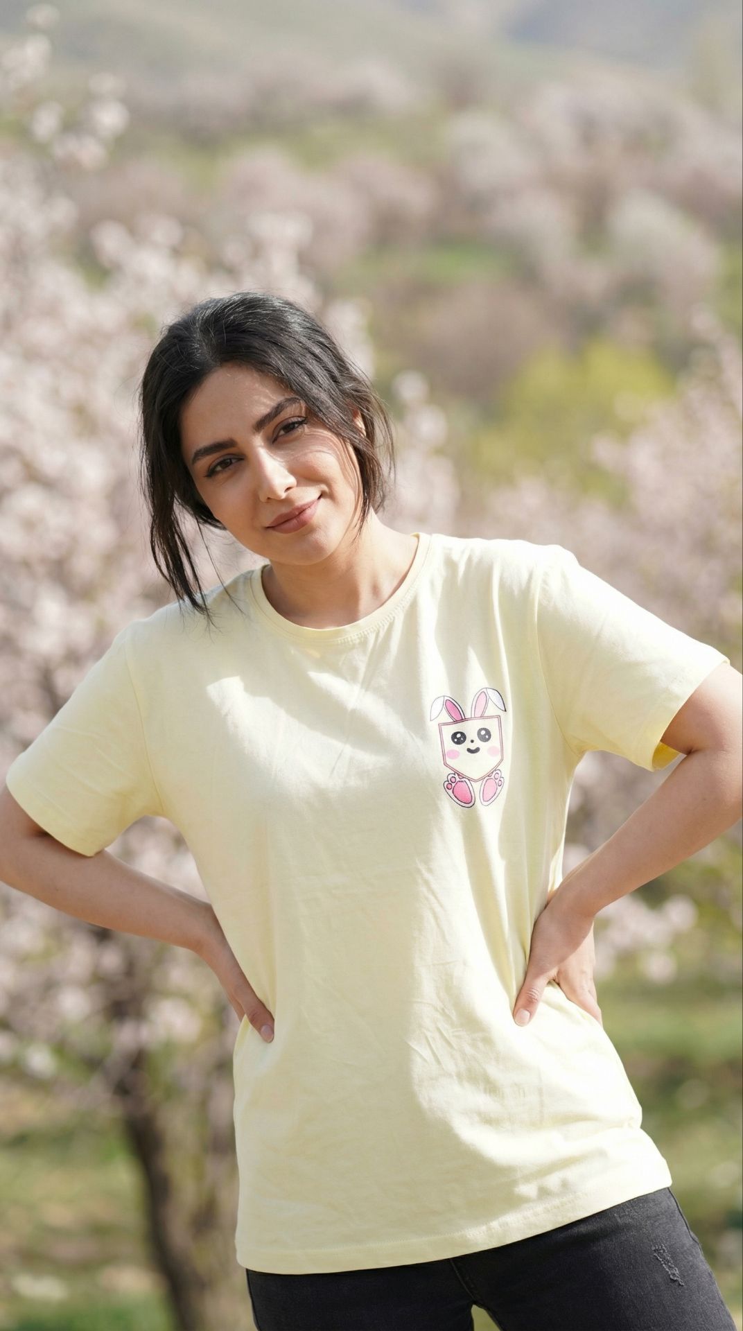 تیشرت پنبه سوپر چاپ مروارید و نگین دار دختر عینکی