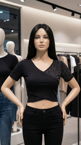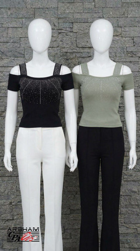 کراپ فانریپ آستین کوتاه جلو نگین دار
