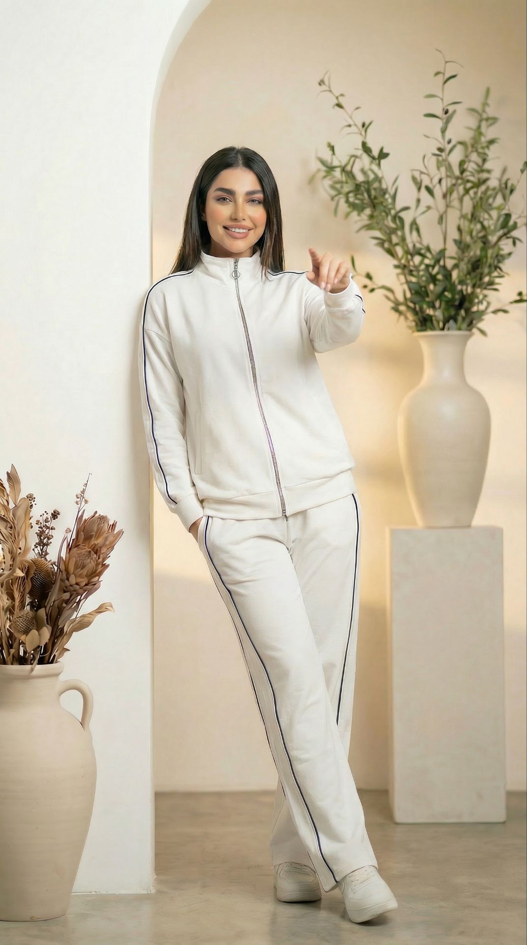 ست سوییشرت یقه ایستاده و شلوار بگ پنبه بهاره