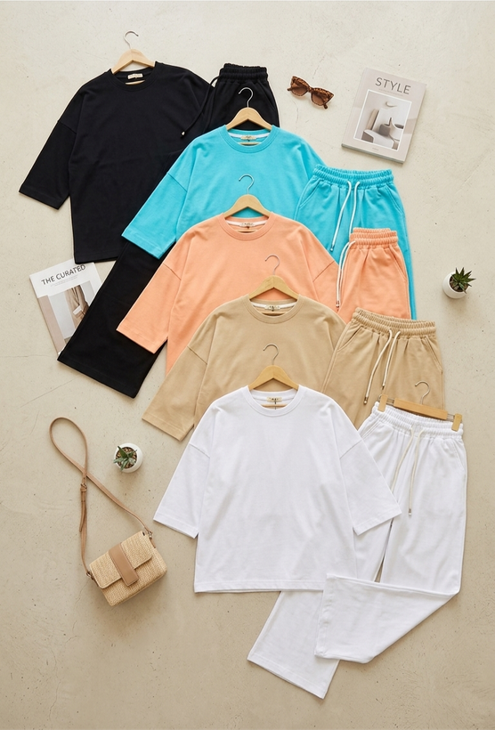ست تیشرت شلوار باکسی پنبه دونخ سوپر