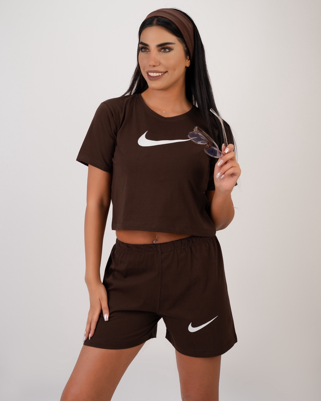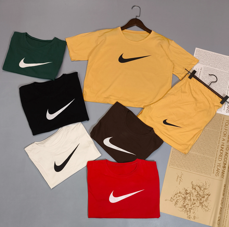 ست کراپ شورتک پنبه سوپر زنانه چاپ نایک