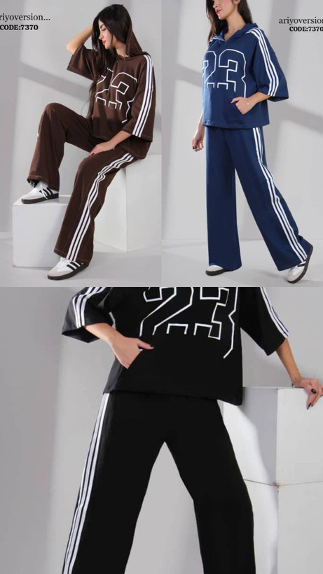 ست باکسی هودی کلاهدار کانگرویی/شلوار تیکه بغل سه نوار 23 آریو ورژن پنبه