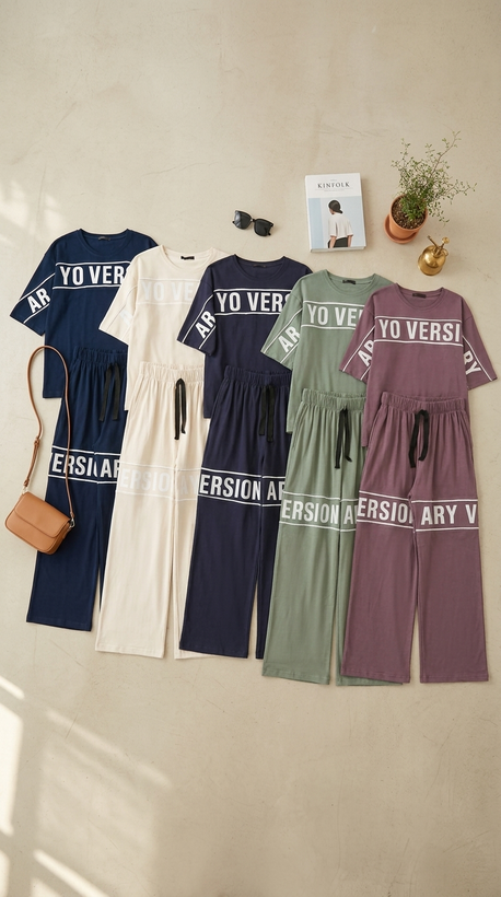 ست تیشرت آستین سه ربع - شلوار بگ ران دو مغزی AV آریو ورژن پنبه